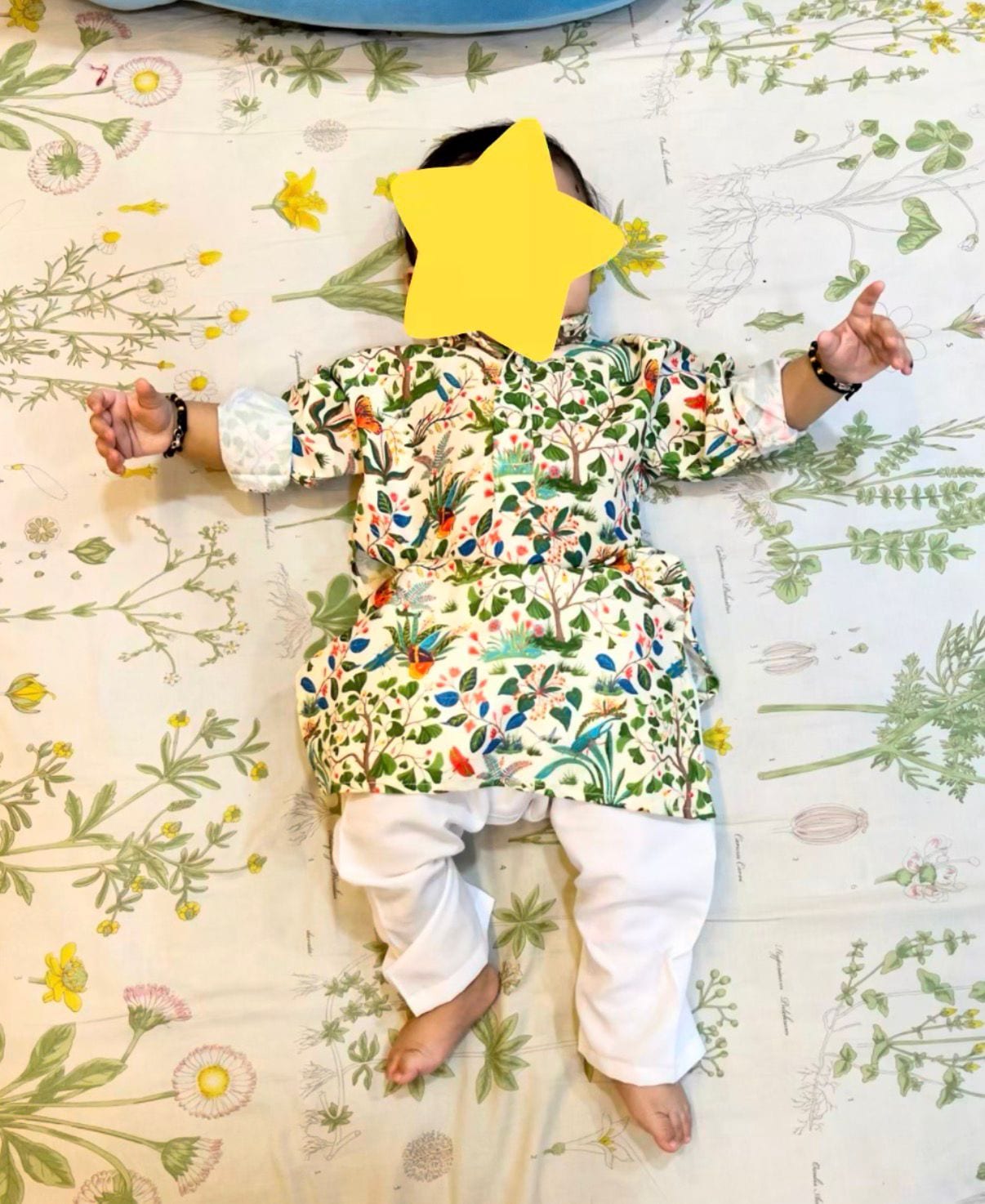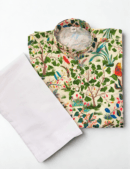 A blooming burst of colors on a soft cream base, this kurta with white pajama is perfect for festive occasions. Stylish, breathable, and easy to wear – it blends traditional charm with modern comfort.
