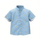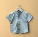 A pastel blue mandarin-collar cotton shirt with delicate golden motifs — perfect blend of ethnic elegance and everyday comfort.