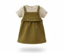 A cute corduroy dungaree-style dress with ruffle detail, paired with a soft printed tee β perfect for a cozy yet stylish look.