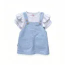 A charming aqua-checked dungaree with front pockets, paired with a soft ruffle-sleeve knitted tee — stylish, comfy & perfect for all-day wear.