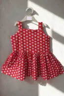 A vibrant red cotton dress sprinkled with dainty floral prints. Lightweight, breathable, and perfect for playdates or special outings — designed to keep your little one stylish and comfy all day long.