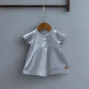 Soft dust blue pastel dress designed for everyday elegance. With its gentle gathers and buttoned yoke, this piece combines comfort with timeless charm — perfect for playdates or special outings.