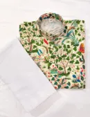 A blooming burst of colors on a soft cream base, this kurta with white pajama is perfect for festive occasions. Stylish, breathable, and easy to wear – it blends traditional charm with modern comfort.