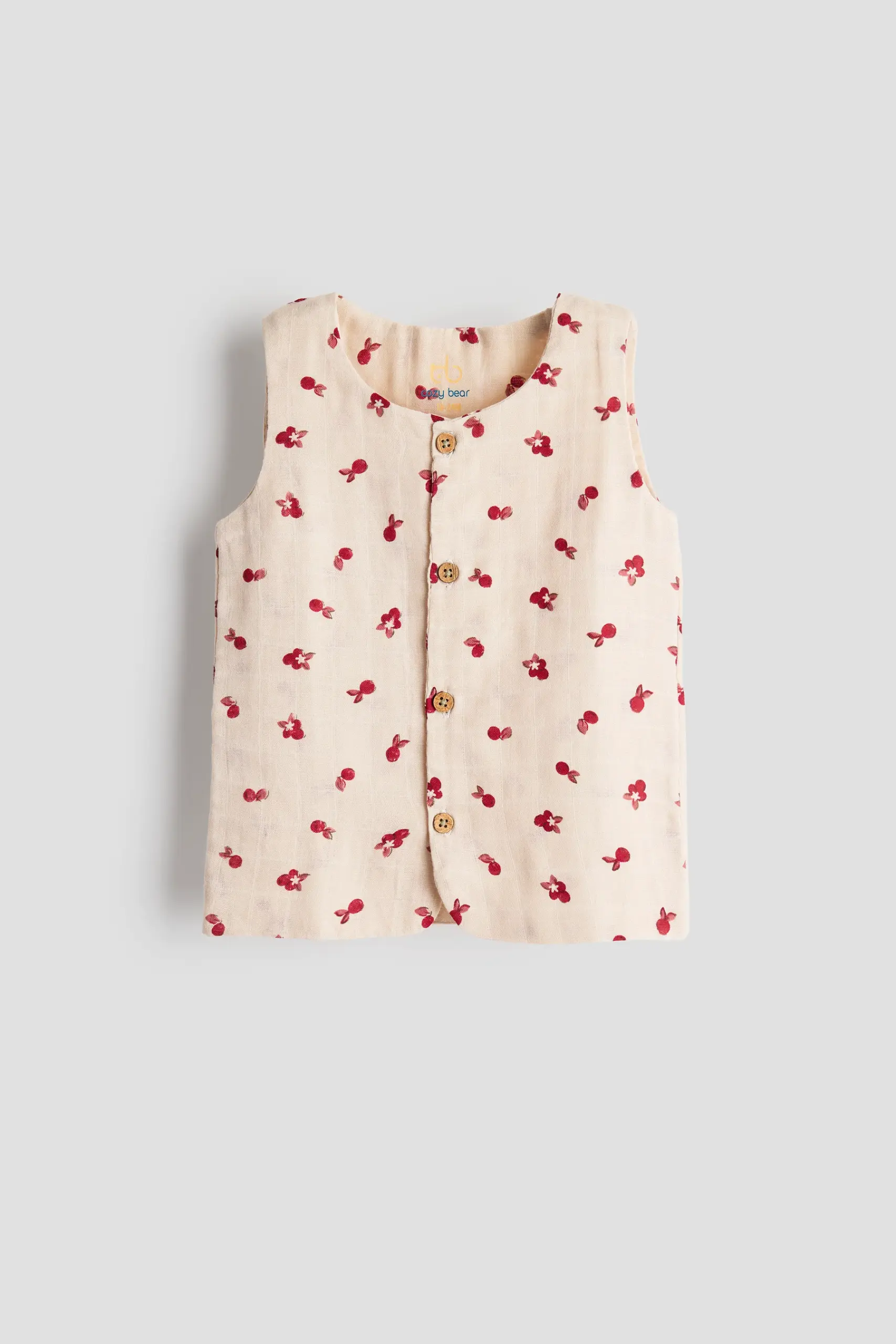 Polished, playful, and practically irresistibleβour Berry Buttoned Set is a breezy nod to timeless summer style. Featuring a sleeveless button-down top and comfy shorts, this outfit is made from soft, breathable cotton with a classic all-over cherry floral print that looks fresh off a storybook page.